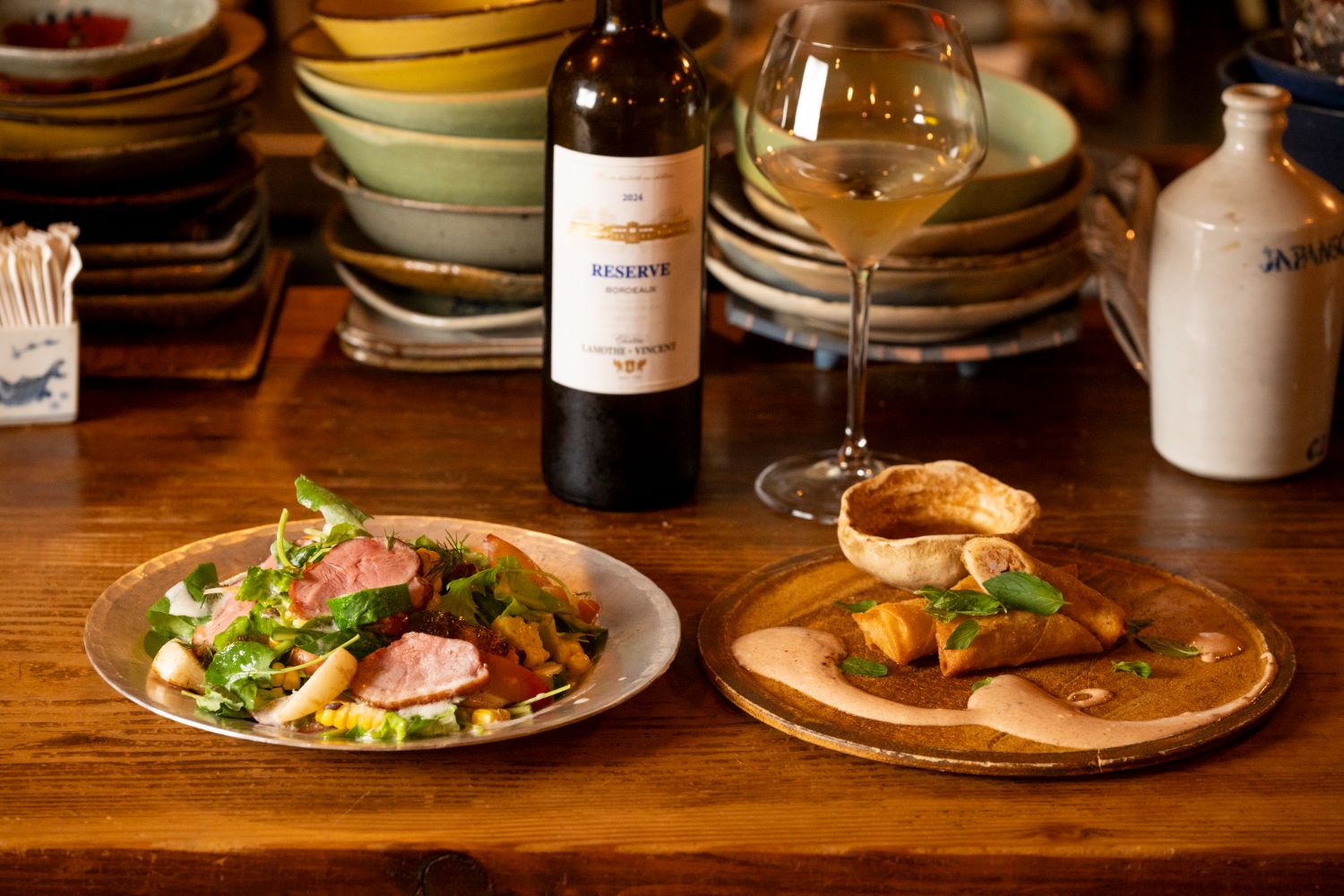 ハンドメイド感のあるウッディで落ち着いた店内で、フレンチとナチュラルワインを良心的な価格で楽しめるカジュアルなビストロ。「お酒の価格は少し控えめに設定しています。そのほうが気軽に通ってもらえますから」と、店主の湯原圭介さん。丁寧な下ごしらえが感じられる手作りの料理や、造り手との交流が見えるワインのメニュー表などはまさにアナログ。店内にはゆったりとした時間が流れる。