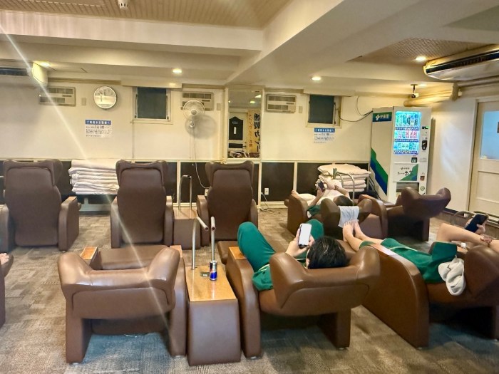 休憩エリアにはリクライニングチェアが並んでいて仮眠スペースとして使える。漫画コーナーも充実しているから時間潰しには困らないだろう。さらにランドリーコーナーも完備。終電を逃した時の救世主となりそうだぞ。