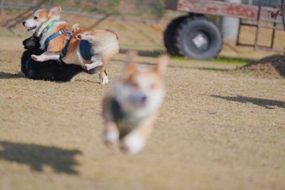 ドッグランで遊んでいたコーギーさんたちを撮影した結果…。ほんの一瞬で想定外のハプニングが続発!?情報が大渋滞するまさかの光景は記事執筆時点で232万回を超えて表示されており、13万件のいいねが寄せられることとなりました。