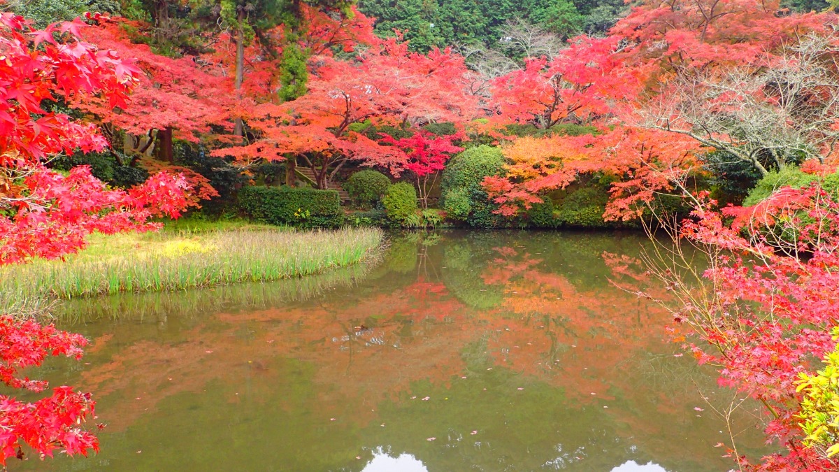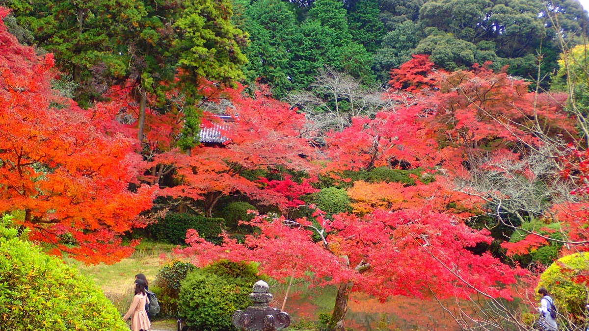例年11月中旬からモミジやカエデなどの木々が色付き、12月上旬頃まで美しい紅葉が境内を彩る。