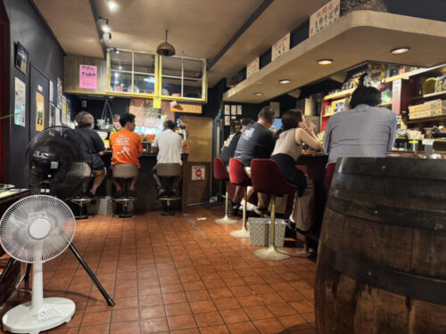 店内もレトロなグッズが飾ってあり、並んでいるお客さんにも話しかけたり、気さくなご主人。