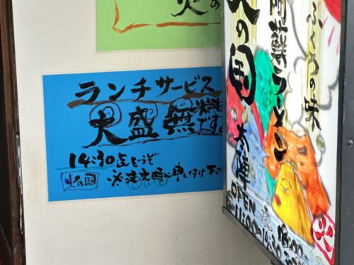 待っている間キョロキョロしていると「ランチサービス大盛無料」の貼り紙や