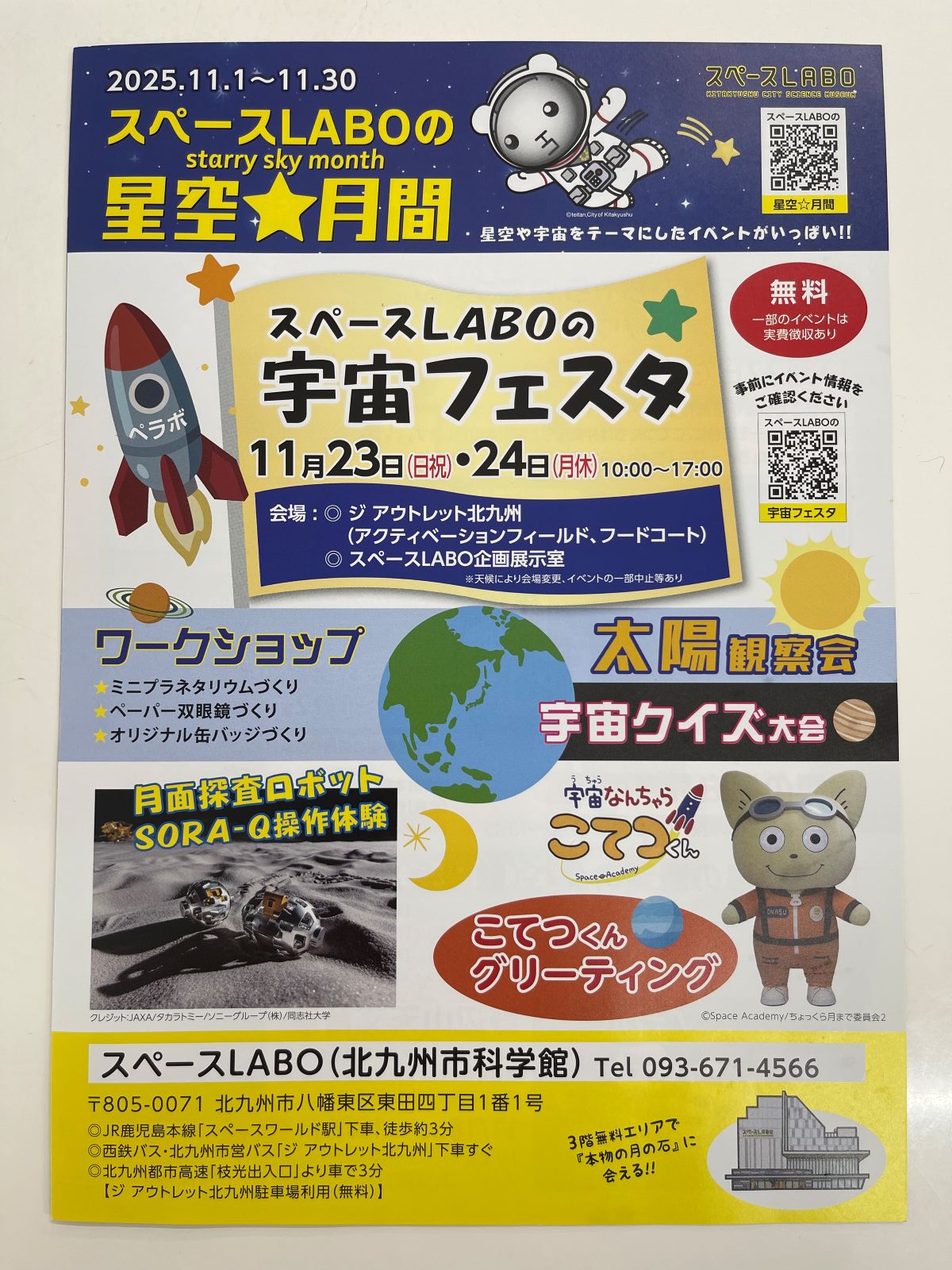 ジ アウトレット北九州とスペースLABO本館を会場に11月23日と24日の2日間、「スペースLABOの宇宙フェスタ」が開催されます。