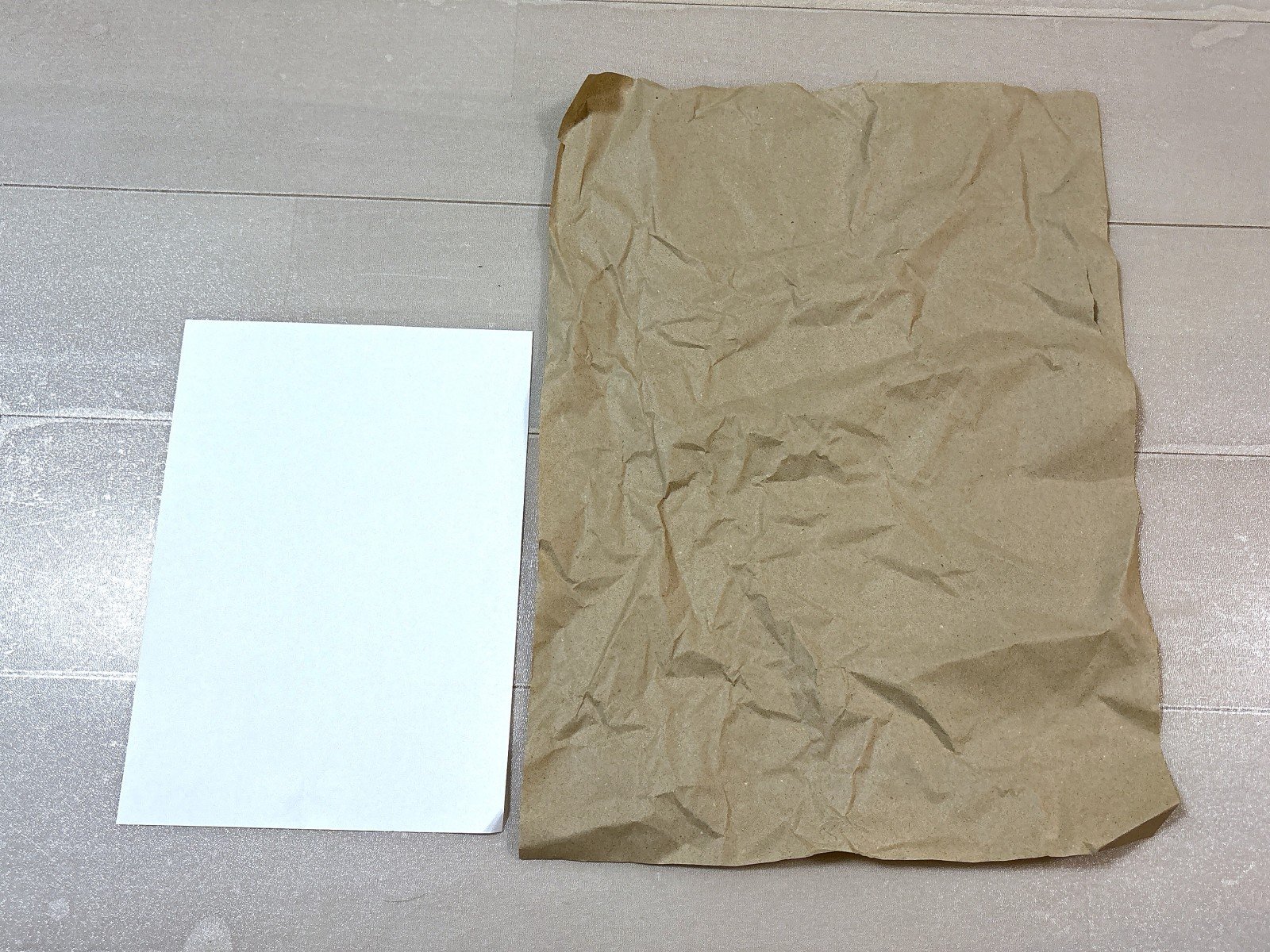 くしゃっと丸まった緩衝材も、広げると大きな1枚の紙になります。