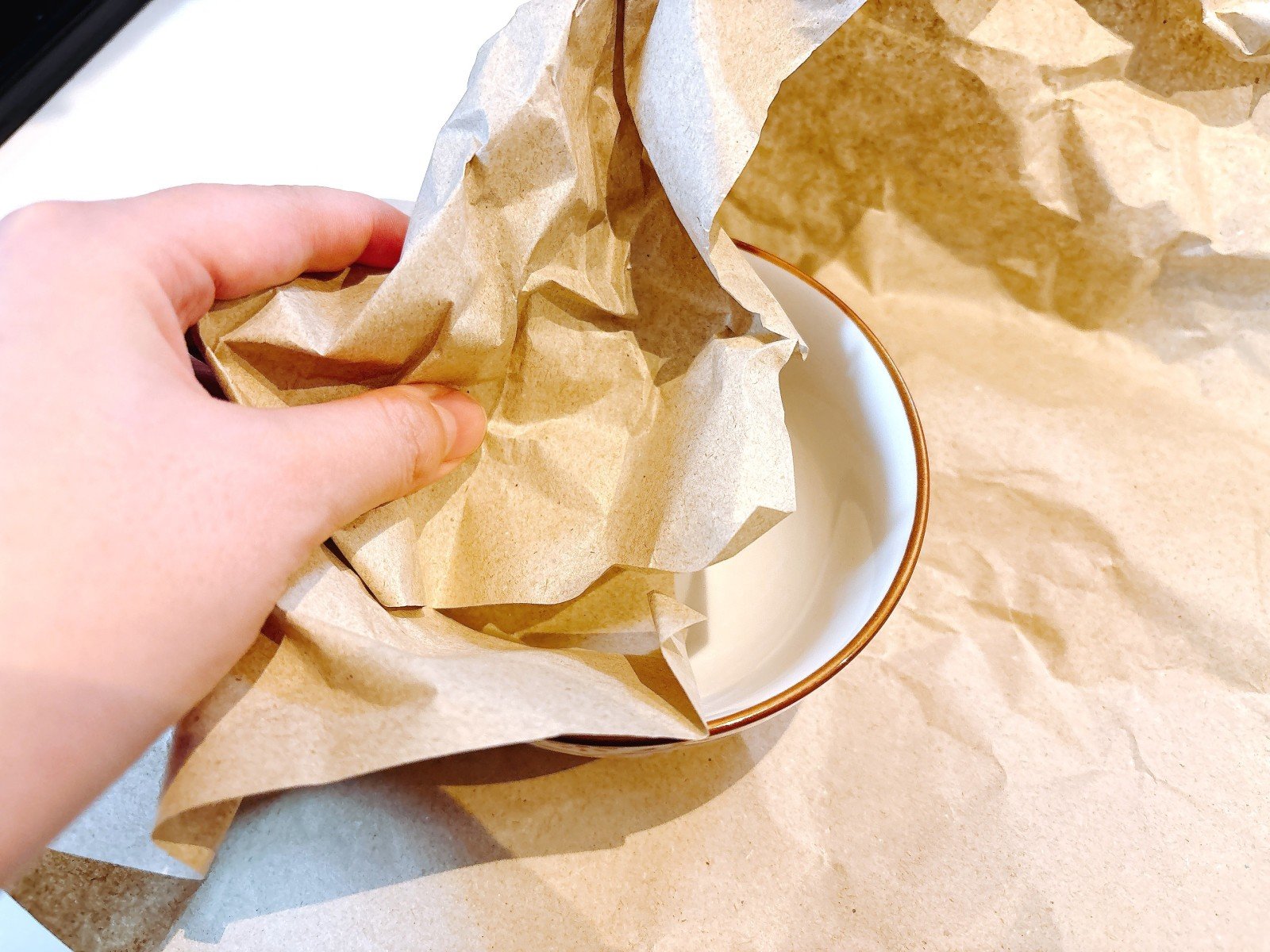 緩衝材元々の用途通り、割れ物を包むのにぴったりです。大きな紙1枚でしっかりと包み込めるので、割れた破片も飛び散りにくくて安心です。