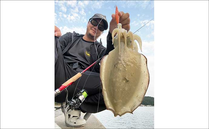 私はゲストとしてエギング講習と質問コーナーを担当。釣り初心者の子どもたちに、ロッドの扱い方や立ち位置のアドバイス、エギの動かし方やレンジの探り方、カラー選びのポイントなどを丁寧に解説しました。