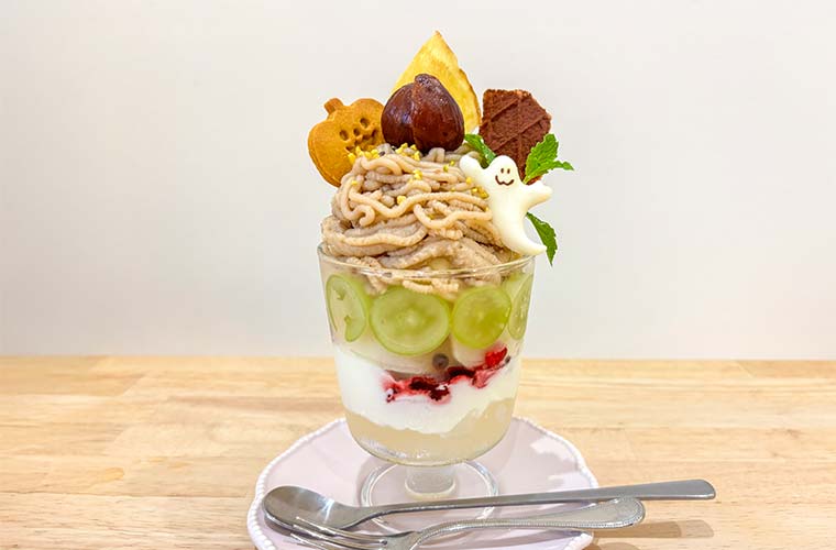 姫路市京口町に佇むまつエク&ネイルサロンに併設のカフェ「cafe&beauty Kasane,(カサネ)」は、季節感あふれるスイーツが豊富で、シーズンごとに通いたくなるお店♪とびきりキュートなパフェを味わい、秋素材とハロウィンを同時に楽しみませんか?