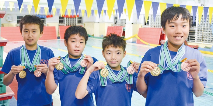このほか「10歳以下男子4×50mフリーリレー」では同じメンバーで3位となり、10歳以下の区分でチーム総合6位の好成績を収めた。伊賀上さんは「小さいころから指導してきた子どもたちが表彰台に上る姿を見るとじーんと感動した。ここまで一生懸命ついてきてくれてうれしい」と活躍をたたえた。