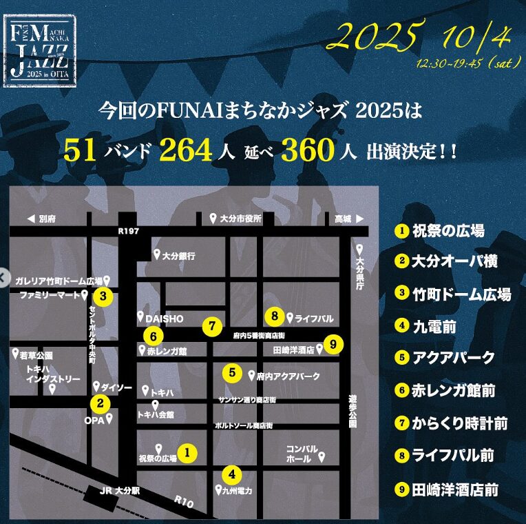 県内外から集まるジャズミュージシャンたちが 大分の街をジャズで彩ります♪