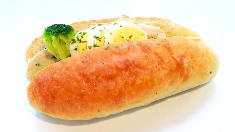 店の人気商品の一つが「めんたいバター」(税込380円・上写真上)です。新宮町の無添加明太子をたっぷり使い、よつ葉バターやにんにく麹の旨み、明太子のピリッとした感じがアクセントになっています。レンジで温めてトースターで焼き上げると、じゅわりと広がるめんたいバターとバリッともっちりな食感を楽しむことができます。