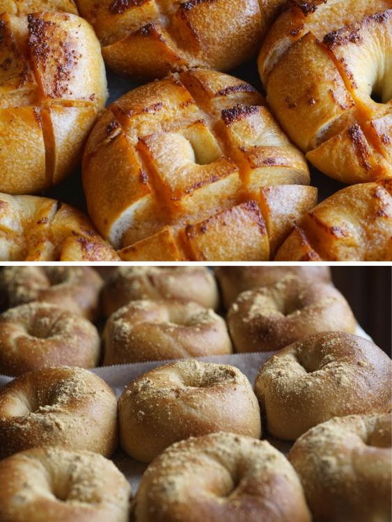 ベーグルには北海道産小麦をはじめ、きび砂糖やはちみつ、よつ葉バター、粗塩、そして自家製の発酵種を使用しています。2日間かけてゆっくりと発酵させることで、噛むほどに旨みが広がるベーグルに仕上げています。
