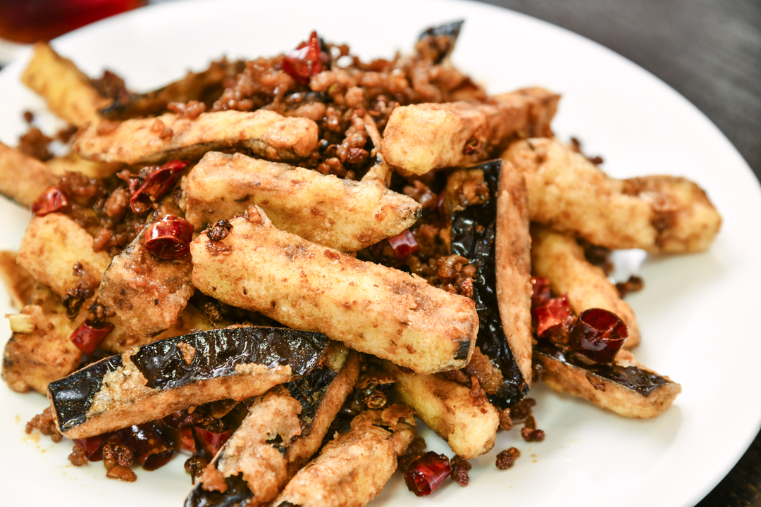 おいしさの秘密は火力。中華鍋に入れたものが一瞬ですべてが丸焦げになってしまうほどの「超強火」でアッという間に仕上げる。これは中国の国家資格「特二級厨師」の称号を持ち、来日して20年以上になるベテラン料理人だから為せる技だそう。そのため注文後、驚きの速さで提供されることも少なくない。カリカリ・ホクホクの茄子は一度食べたら忘れられない「まるでポテトのよう」な軽~い食感。食べる度こめかみから汗が滲み出てくるほどのしびれる辛さと、箸が止まらなくなるウマさの組み合わせに中毒者続出。茄子を食べ尽くしたあとに残ったカリカリの豚ひき肉とねぎ、にんにくでまたビールがすすむ!