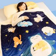 ピカチュウやカビゴンをはじめ、さまざまなポケモンたちがやさしくデザインされ、くつろぎの時間を楽しく彩ります。お昼寝やソファでのんびり過ごすときにもおすすめ。