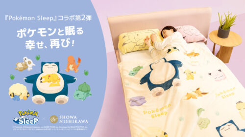 ポケモンのスマホアプリ「ポケモンスリープ」と、昭和西川がコラボ。アプリのテーマに合わせて、忙しい日々の中、眠りの時間にそっと寄り添う存在として生まれたコラボが人気を博したことから第2弾を展開。