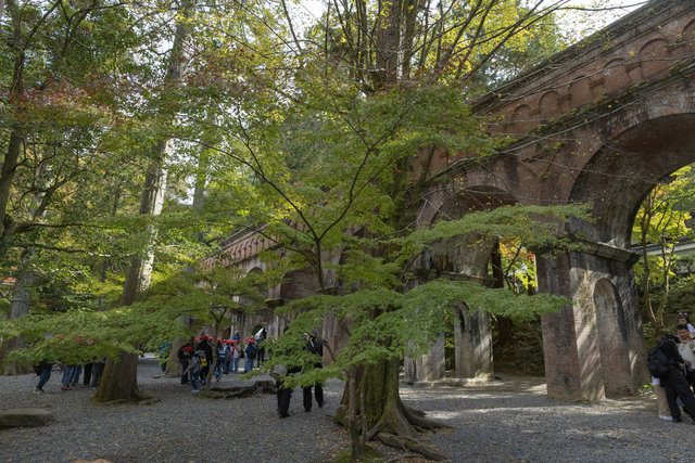 大人気のフォトスポットとなった、水路閣。海外の方や比較的若い方が、和装で撮影に来られていました。紅葉はほとんどが青葉で、こちらが色付くのは、三門付近より遅くなりそうな印象です。