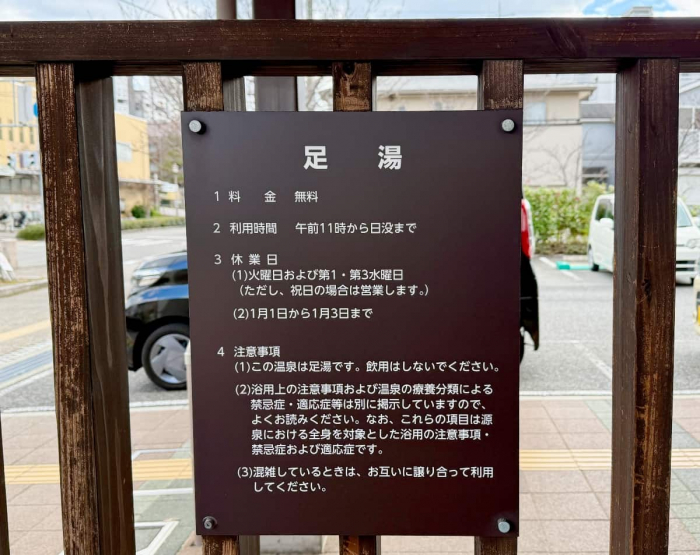 有料の温浴施設と無料の足湯があり、お買い物ついでや散歩中でも気軽に立ち寄れるという足湯を利用してみました。