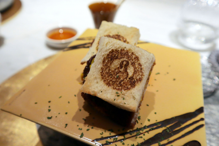 続いてやってきたのは、クリームチーズとハーブをあえたソースとレモンのオリーブオイルがアクセントになった「サーモン」。香ばしさの後にクリーミーさとさっぱりしたレモンの香りが鼻を抜け、トッピングのとびこも食感が◎。