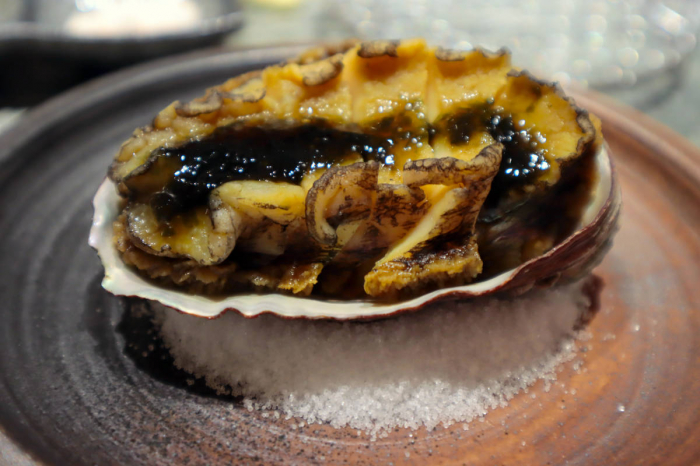 さらに続いてやってきたのは「蒸しアワビ」。あおさの出汁ソースが上質な味わいのアワビとよく合い、磯の香りを感じられました。
