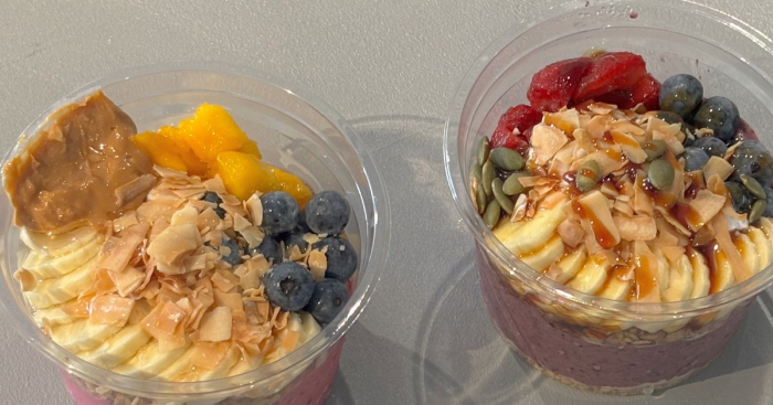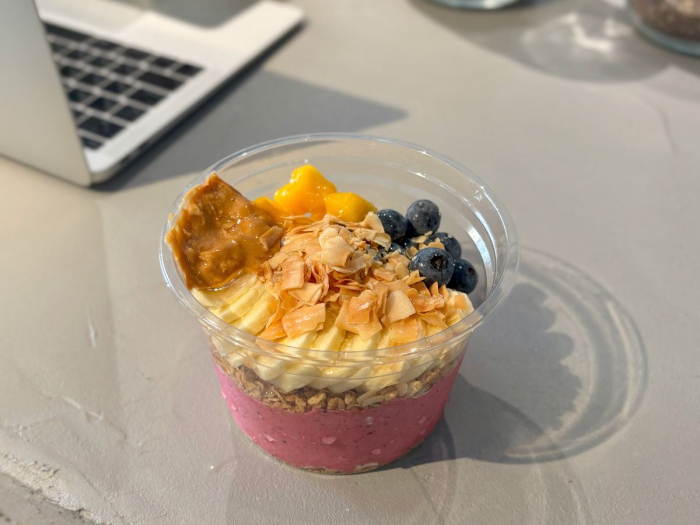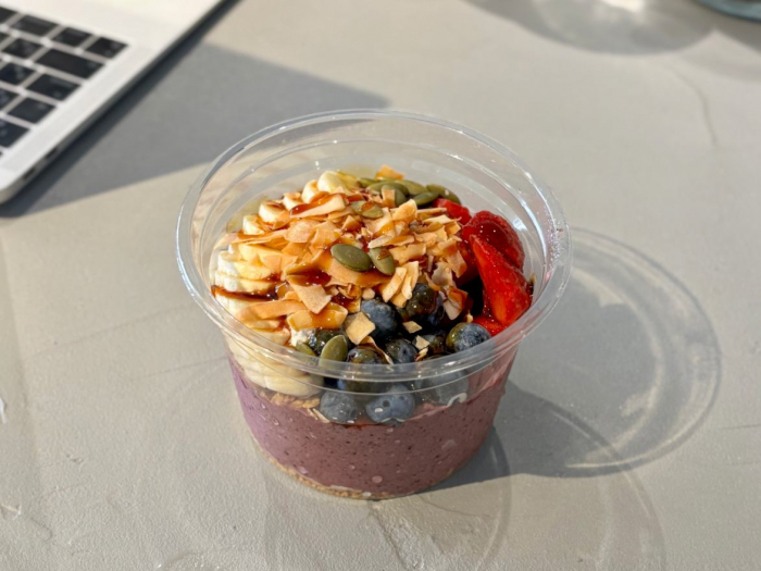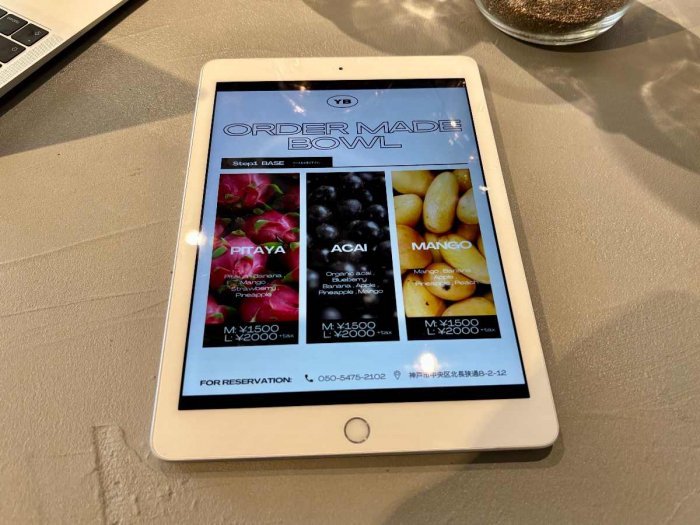 8時30分から17時まで営業していて、モーニングもいただけるのですが、やはり今回はスムージーボウルをいただくことにしました。まずはベースをアサイー・ピタヤ・マンゴーの3種類から選びます。