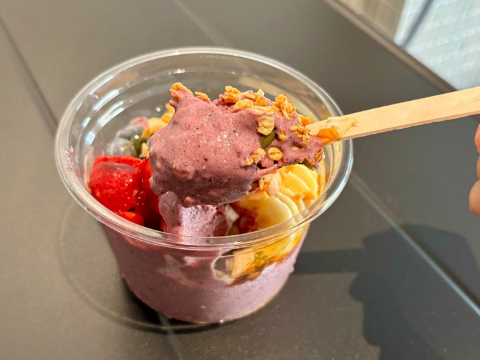 ベースにはアサイーと5種類のフルーツが入っていて、ベリー系の味わいとフルーティーな香りが漂い絶品。酸味と甘さのバランスもちょうどよくて、美味しいのはもちろんのこと体が喜んでいる気がしてきます♡