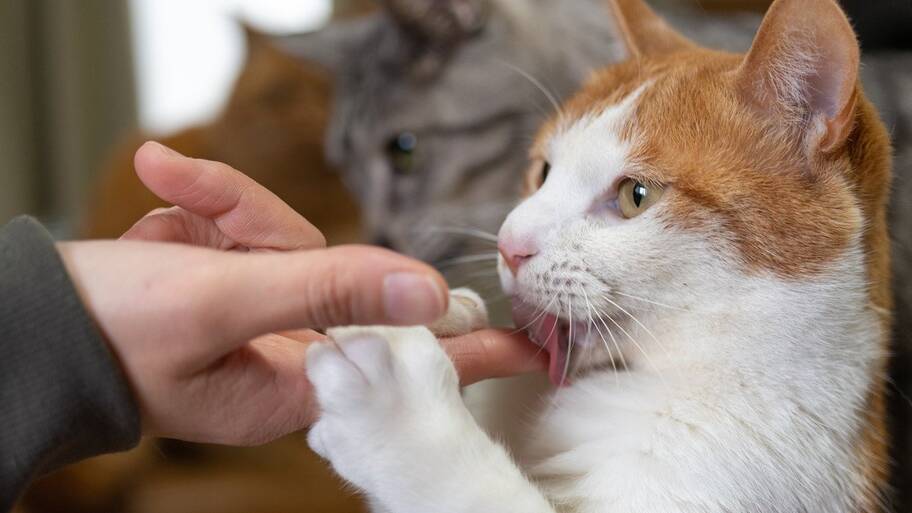 “危険じゃないから大丈夫”と、余裕を持った冷静な声で話しかけるとよいと思います。