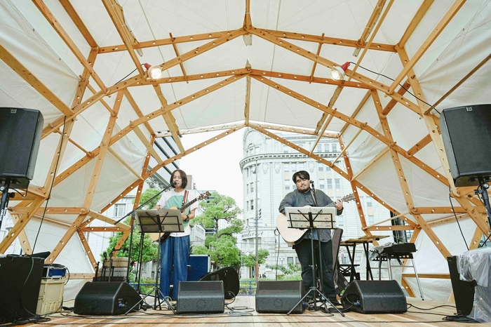 2日目には儀間健太×林萌々子、ONI、向井秀徳アコースティック&エレクトリックといった、イベントにゆかりのある面々が登場。儀間健太×林萌々子は夫婦ならではのほっこりとしたステージを、ONIは祝祭館満載の大賑わいのパフォーマンスを。それぞれのイベントの空気感を満喫しつつ、ここでしか観られないパフォーマンスが次々に展開されていく。