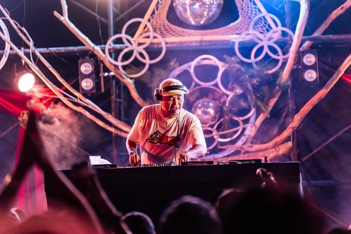 同会場の2日目のトリには石野卓球が登場。ステージは山側に向かってスピーカーが設置されていて、会場に向かう道中から届く音が最高に気持ちいい! 野外の解放感+海風の心地よさも相まって、音も空間も快感の極み! お酒片手に踊り明かす観客たちの表情がとにかく素敵だった。