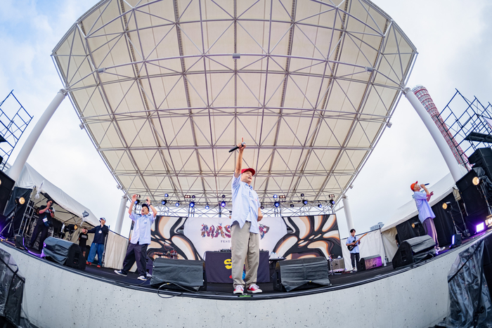 2日目のメリケンパークでは、デビューから35年を迎えたスチャダラパーが「CHECK THE WORD」、新曲「ビート道」など新旧の楽曲で盛り上げる。「心のベスト10、第一位やっていい?」とくれば、もちろん「今夜はブギー・バック」。この日のステージは『ブジウギ音楽祭』のステージに出演していたLUVRAWやロボ宙とのコラボライブで、港町にぴったりな大人なミックスを届けてくれた。