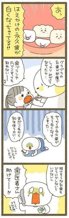 永久歯の白くなった部分は、歯医者さんがガリガリしたら取れたみたいで良かった~。