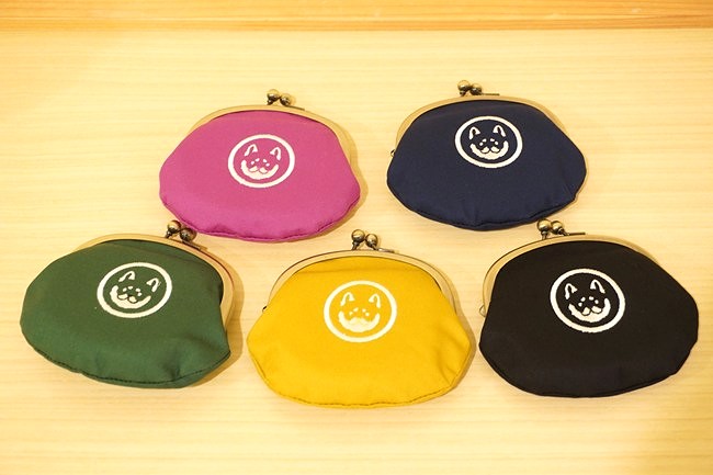 『和んこ堂』の刺繍入りがま口は、ピンク、紺、緑、黄、黒の5色のラインアップからランダムで1個いただけます。
