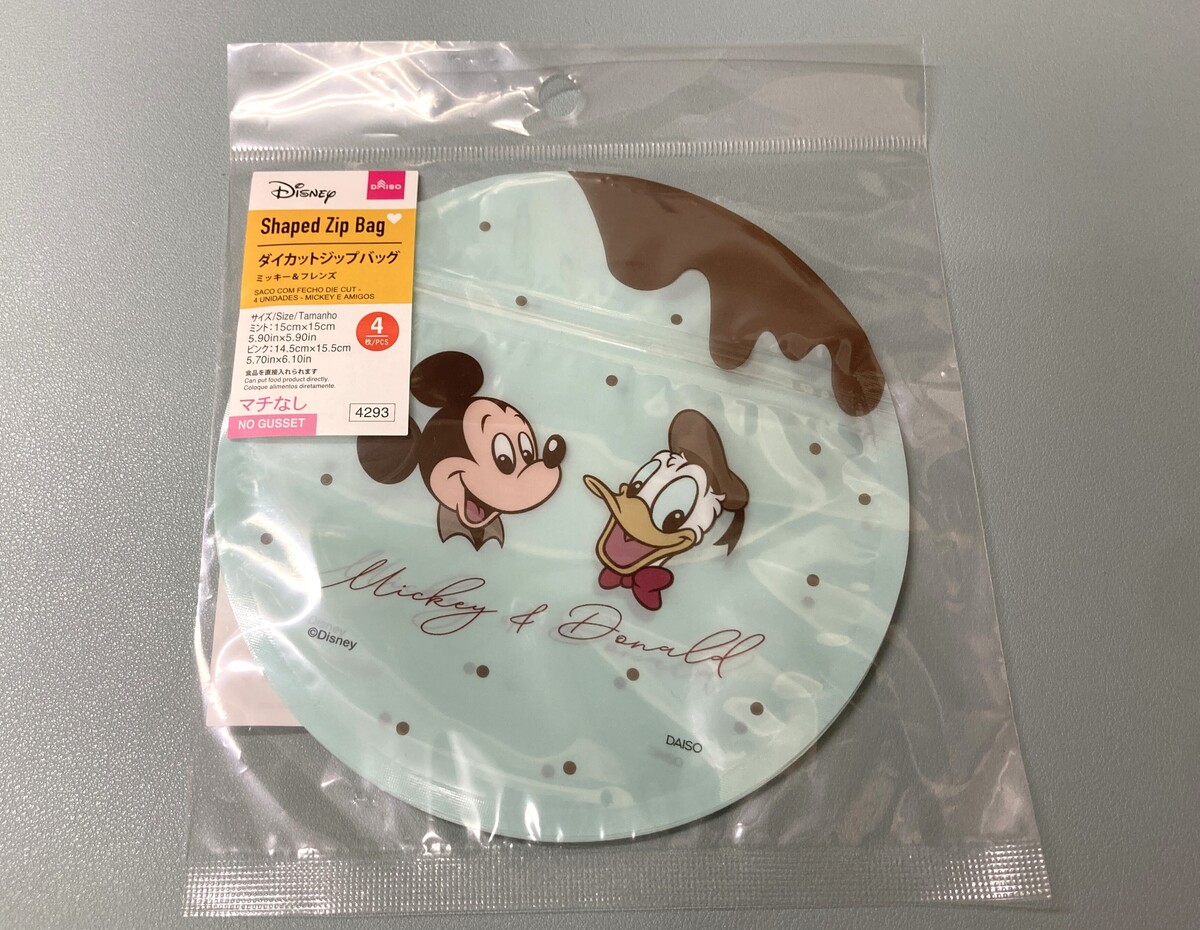 ダイソーで見つけたのは、アイス型がかわいい「ダイカットジップバッグ ミッキー&フレンズ(ミント)」(税込110円)。