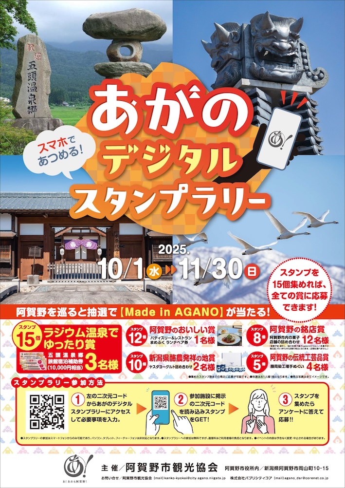 【阿賀野市・あがのデジタルスタンプラリー】メイド・イン・アガノが当たる!デジタルスタンプラリー開催中