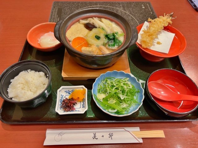 京都駅、京都伊勢丹百貨店レストラン街にある大阪を代表する老舗『美々卯』。大阪郷土料理「うどんすき」のパイオニアで、それが楽しめる貴重なお店。付属の料理にも和食店らしい丁寧さがうかがえ、うどんとは言え日本料理の趣きを感じさせる上品さが魅力。