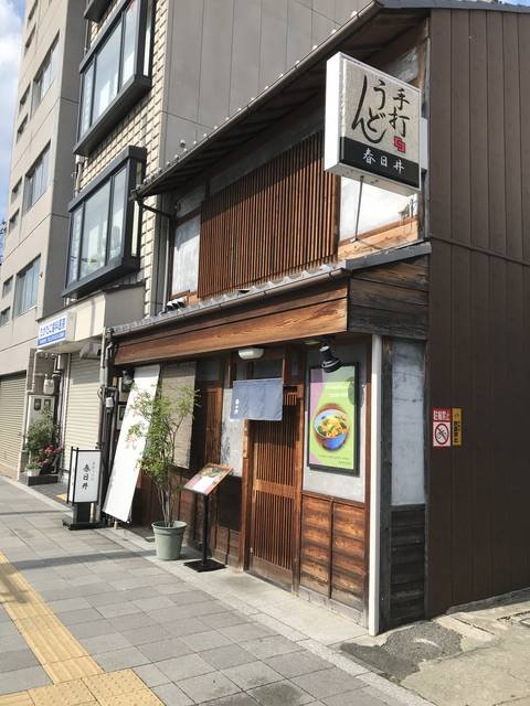 五条大宮通を西へ行った場所にある行列風景見かける人気の手打ちうどん『春日井』。自慢の自家製手打ちうどんは細いタイプの京風うどん。温or冷で楽しめ、透明感ある上品な細うどんの食感の良さ、出汁やトッピング材の丁寧な仕事ぶりが光る。