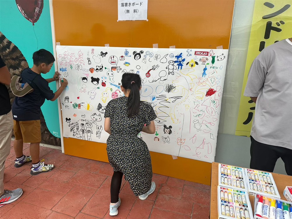 大きなキャンバスに思い思いの絵を描く、フリーウォールアートは、毎回子どもたちに大人気です。