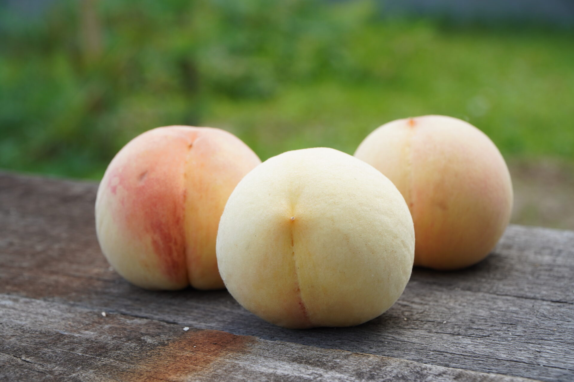 途切れずずっと桃を収穫できるよう、実のなる時期の異なる品種がないといけません。