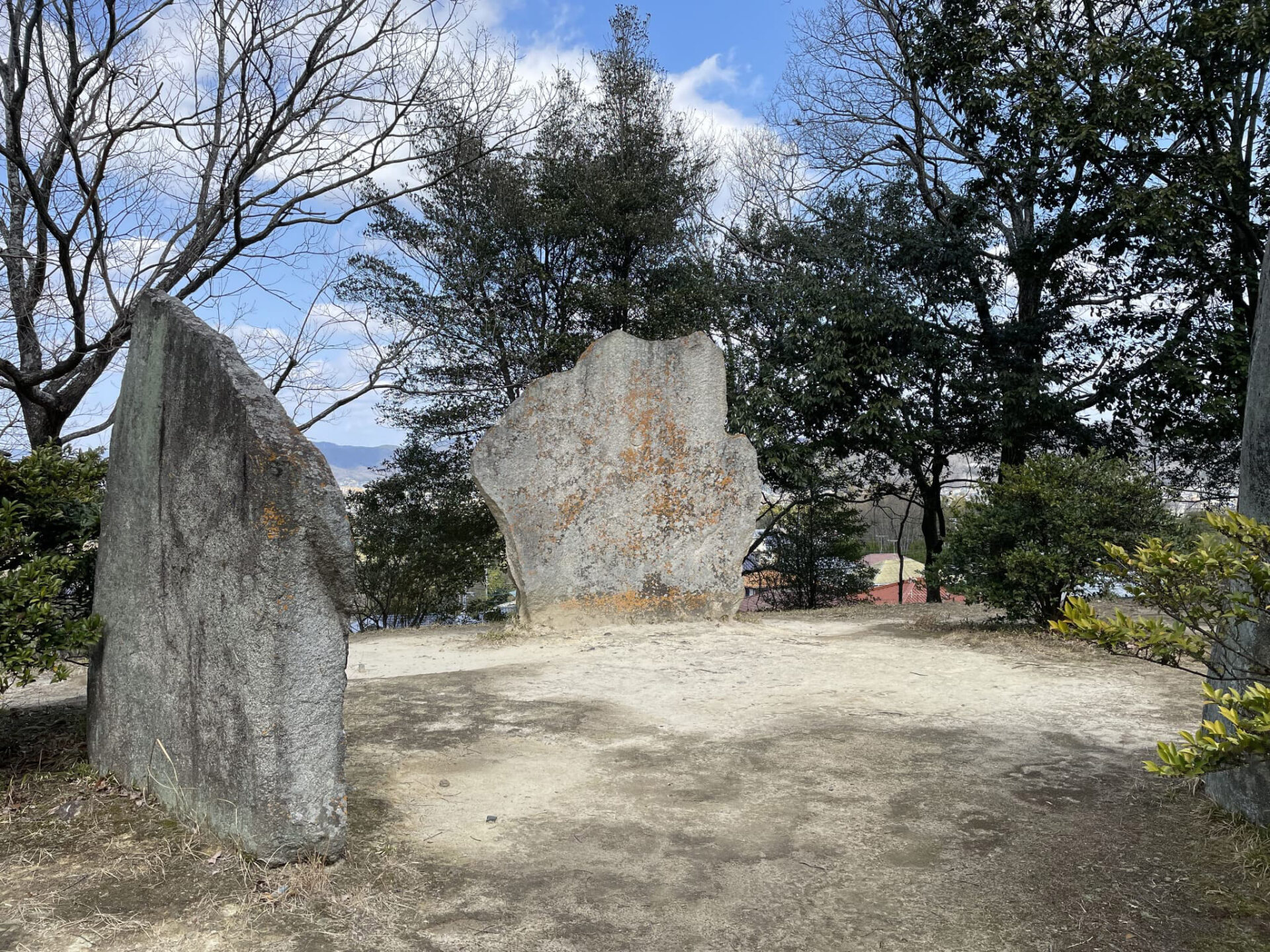 「西の小高い丘の頂には温羅の矢を防ぐ巨石の楯を築いた」跡