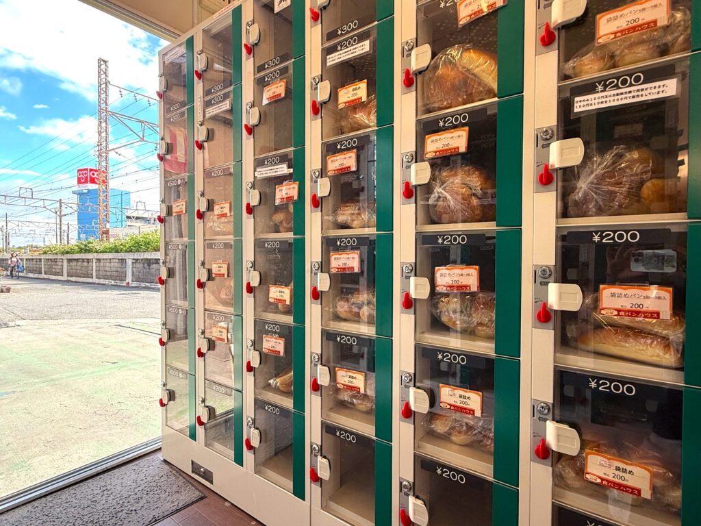 定番の食パンやぶどうパン、クロワッサンなどがロッカーに入っていて、お金を入れて中のパンを自分で取り出すロッカー形式。