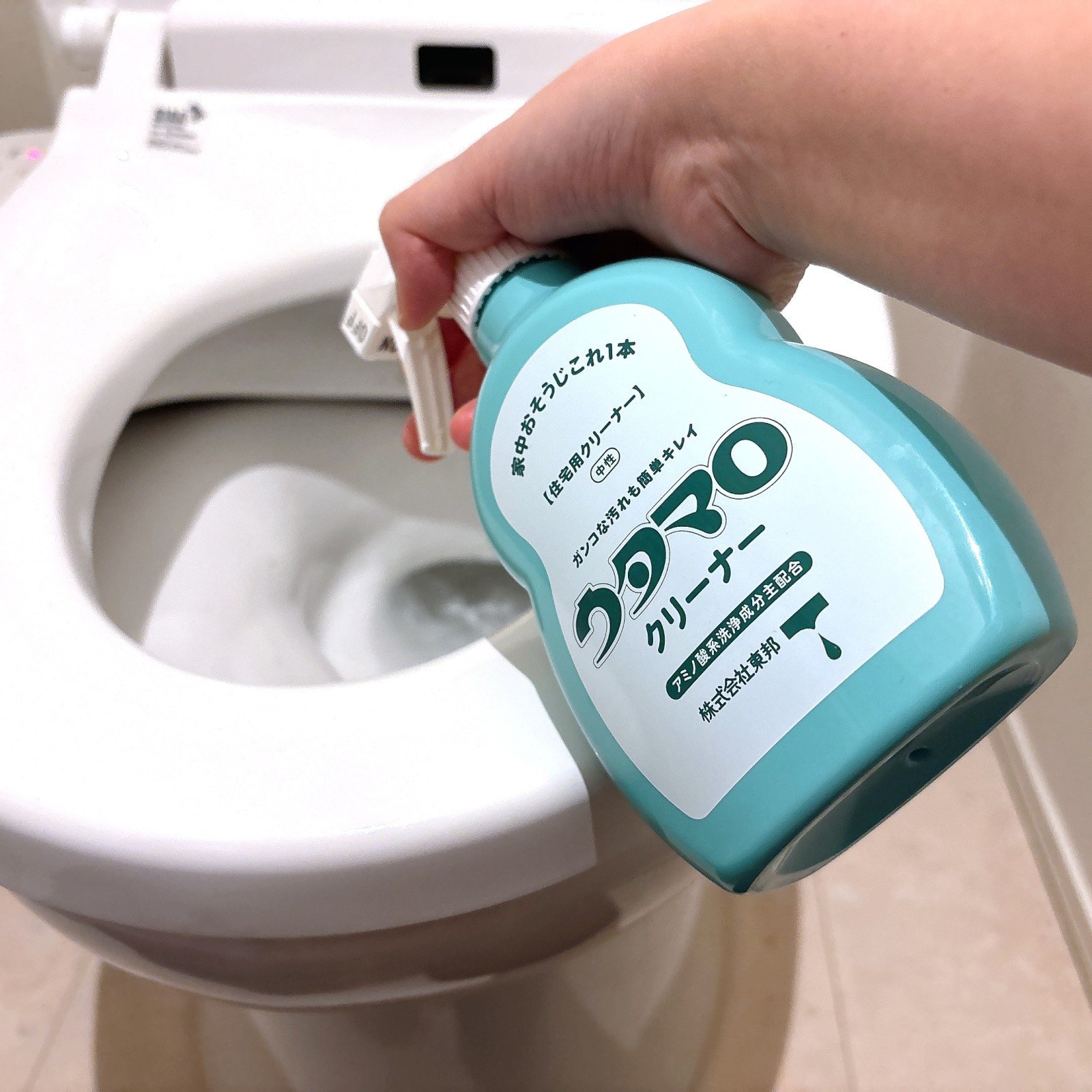 「トイレにも使えるの?」と驚く方も多いですが、ウタマロクリーナーは中性タイプなので安心して使えます。便座やレバー、床まで1本でまとめて掃除できるのも、ウタマロクリーナーのいいところです。