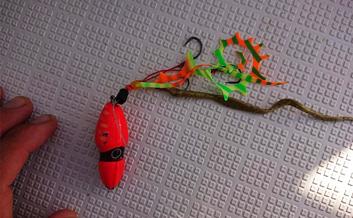 使用したジグは『TGベイトスリム30g(ダイワ)』に『ジャコフックMサイズ(シャウト!)』をセッティングした物。シラスパターンを意識して用意した。