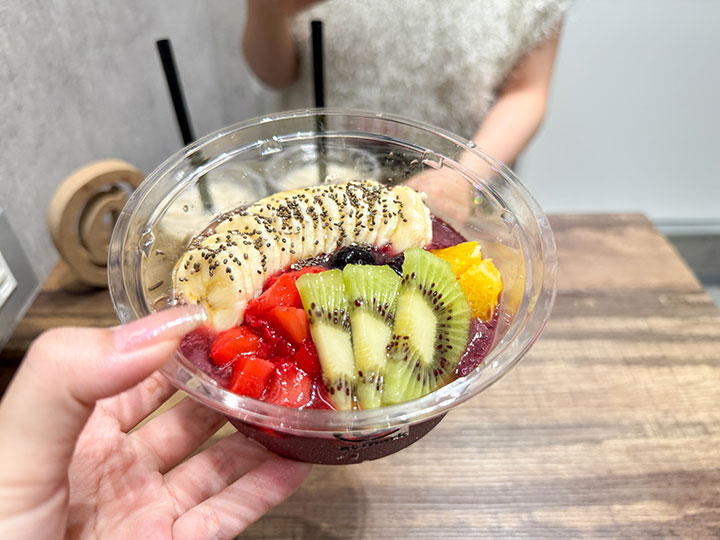 ひと口食べるとアサイーの濃厚さとフルーツの爽やかさが広がって、ヘルシーなのにしっかり満足感があります。朝ごはんや小腹満たしにもぴったり。