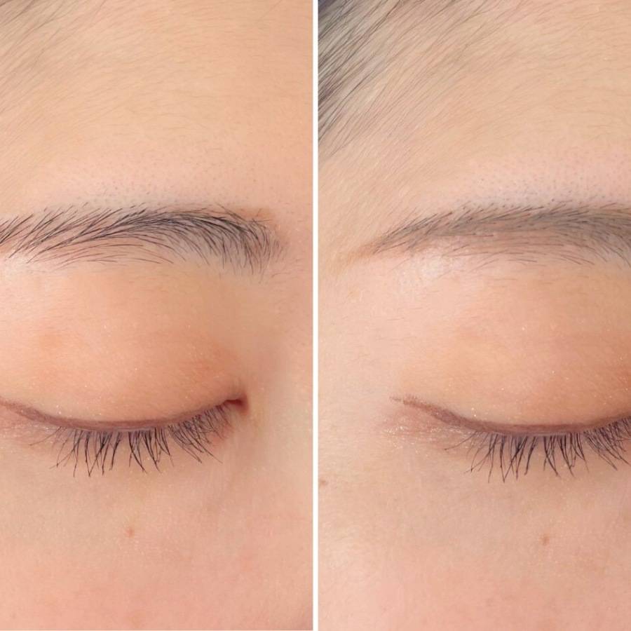 手に出したときの色味がそのまま眉にのるので、黒く太めの毛もしっかりカバーできます。