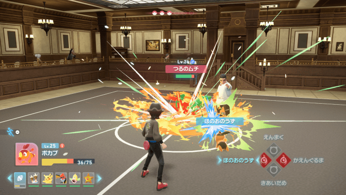 ……と思いきや、私がド下手すぎるあまり戦闘が始まらない。というか、戦い方がわからない。10年以上まともにテレビゲームをプレイしていない私にとってNintendo Switch 2 のボタンは多すぎる。その間もミミロルは容赦なく攻撃をしかけてくるではないか。