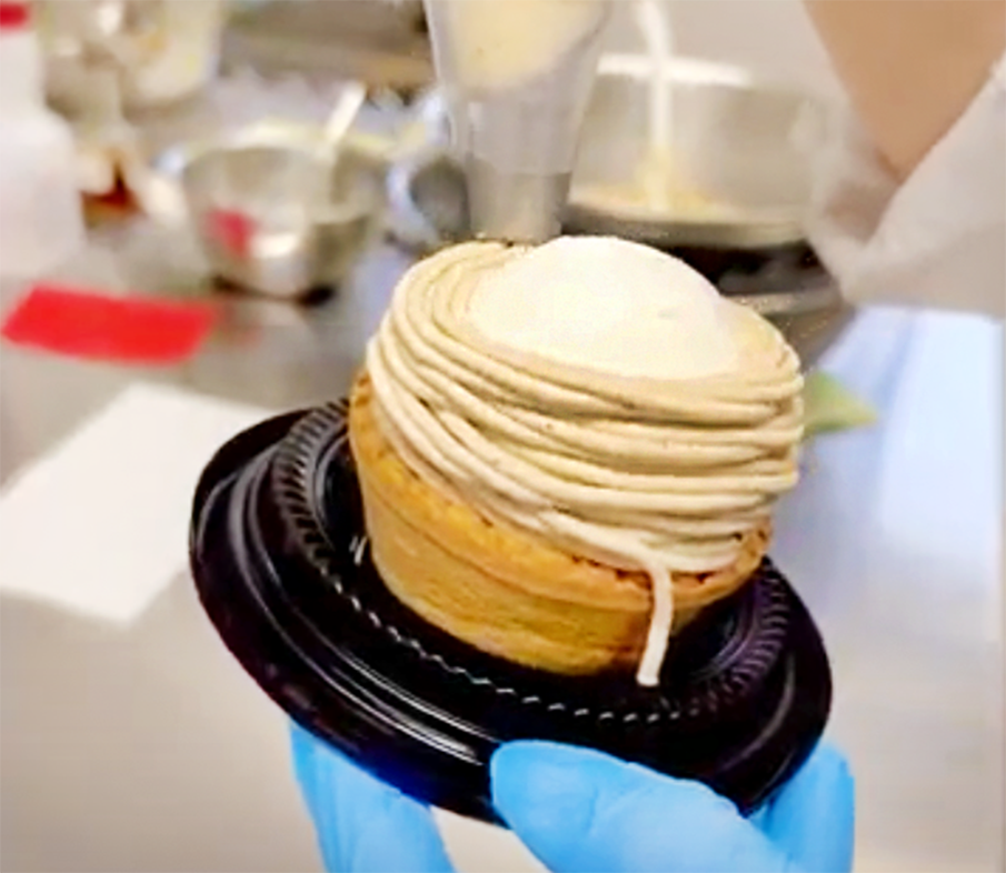 取材当日も製造工場では、伊井さん姉妹が手慣れた様子でひとつひとつ丁寧にモンブランを手作りしていました。様々な職場でお菓子づくりに携わってきたという菓子職人のお二人。