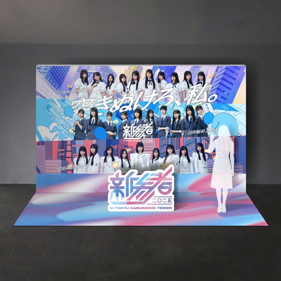 「新参者」は、2023年に坂道グループの新期生と東急歌舞伎町タワーのコラボレーションとして発足。約2年ぶり2回目の開催となる今回は、新たにグループに加わった乃木坂46六期生、櫻坂46四期生、日向坂46五期生たちのデビューイヤーを盛り上げる。