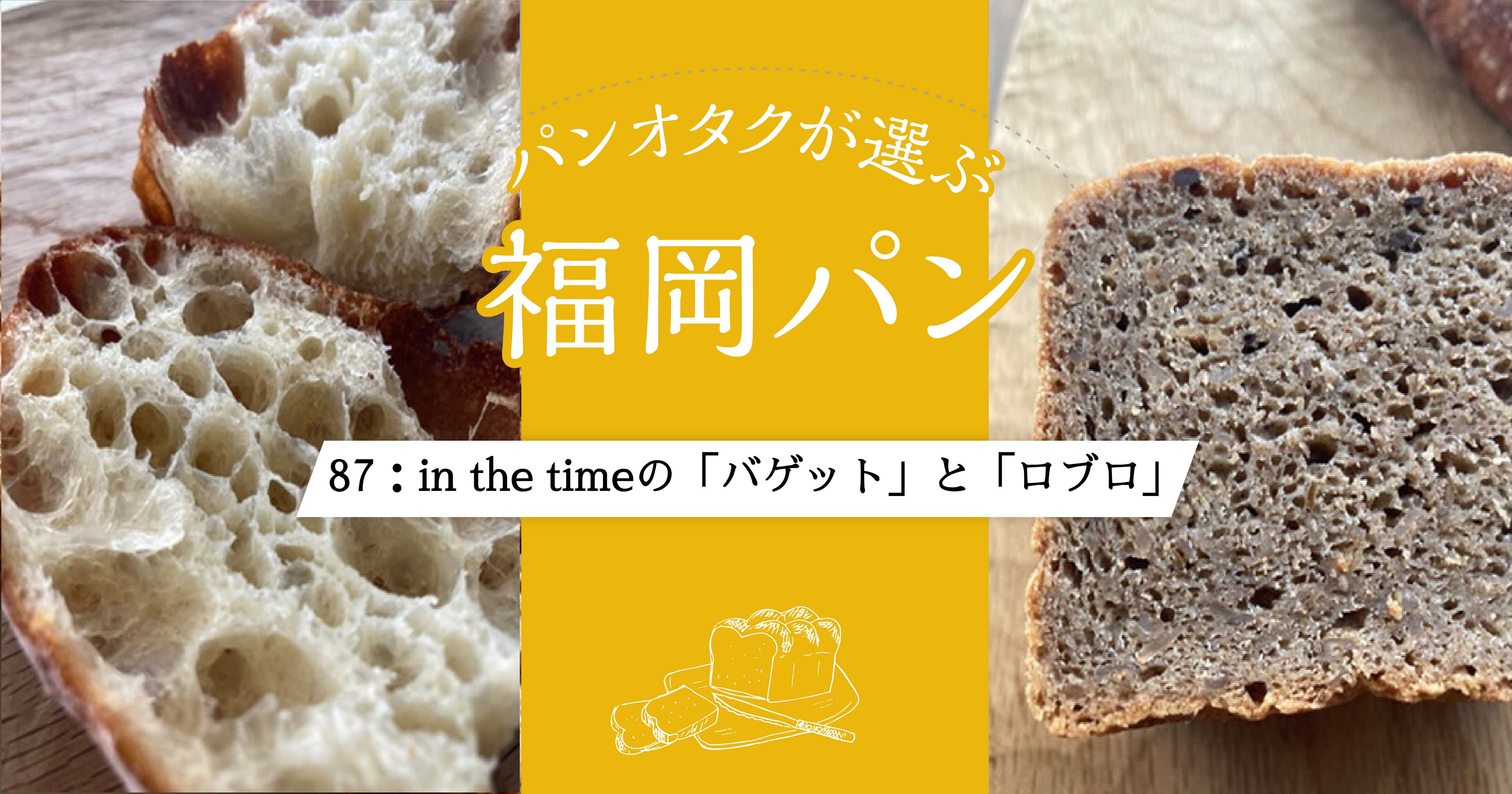 福岡で10年以上パンブログを続け、2020年には城南区別府にパン喫茶をオープンさせた「pantiki」さん。毎日をリープアップしてくれる福岡のパンを、「ひとぱん入魂」の気持ちで1つずつご紹介いただくこちらの連載。87回目の今回は、福岡県早良区にあるin the time(インザタイム)の「バゲット」と「ロブロ」です。