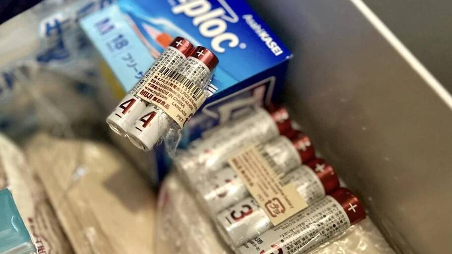 乾電池(10年備蓄)と乾電池で動くモバイルバッテリー。