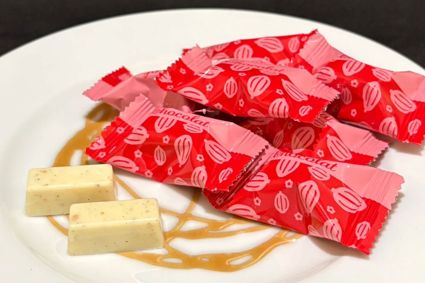 種類:ホワイトチョコレート2種類(七味、柚子)、ミルクチョコレート2種類(山椒、ほうじ茶)