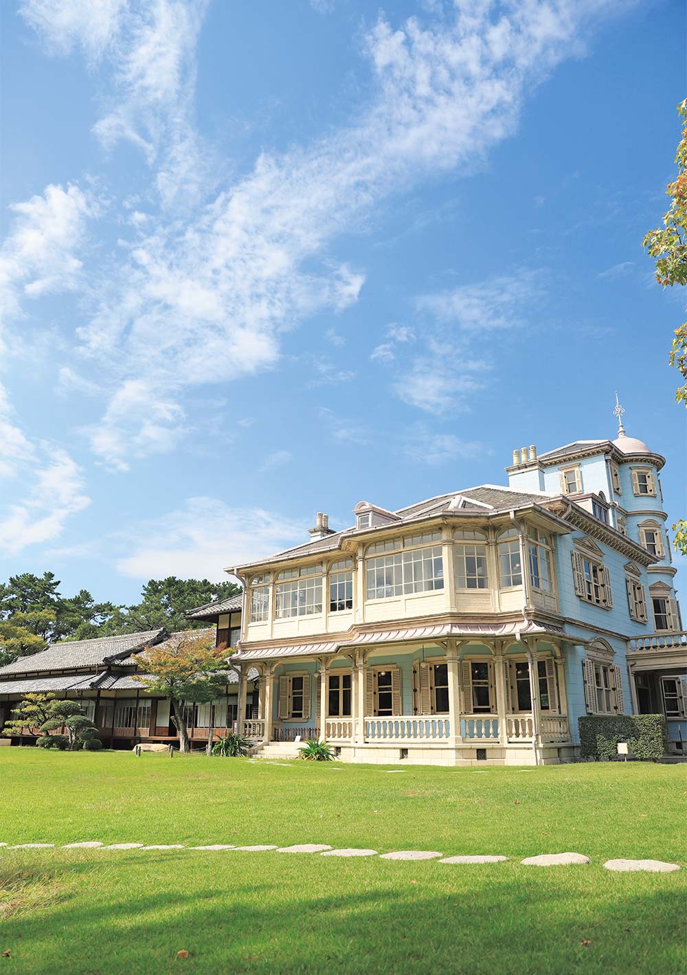 近代の桑名人にも、その気概が。山林王と呼ばれた2代・諸戸清六(もろとせいろく)は“日本近代建築の父”ジョサイア・コンドルに新居の設計を依頼。それが現在の『六華苑』に残る洋館だ。揖斐(いび)川を望む4層建ての塔屋や輸入タイルを敷いた水洗トイレなど、豪華かつ当時最先端な暮らしをしていたのがわかる。