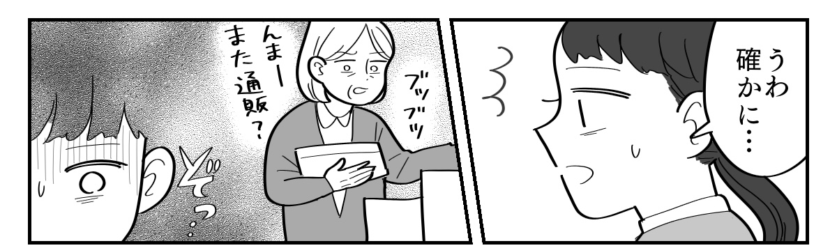言われてみれば……。どうして置いてあるダンボールが通販の荷物だとわかるのでしょう。よく考えれば義母がうちの荷物に近寄って、わざわざチェックしている可能性があるのです。気づいてしまって思わず「うわ」と声が出ました。